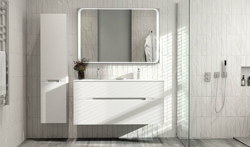 Коллекция Modul — это современное сочетание минимализма и творчества c выделенными функциональными элементами. Четкие прямые линии краев тумбы и раковины образуют форму лаконичного куба, в котором будто вырезаны ручка и раковина с округлыми краями.