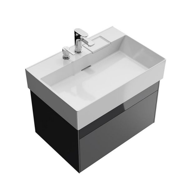 Подвесная тумба Logica — это детально проработанный дизайн и вдохновляющие технологические возможности. Так, при приближении к тумбе автоматически загорается подсветка между двумя выдвижными ящиками. Дистанцию срабатывания подсветки можно настроить с помощью инструкции из комплекта поставки. Фасады и корпус выполнены из МДФ в цвете «Стальной серый»: верхний фасад — глянцевый, нижний фасад и корпус — матовые. Тумба имеет два выдвижных ящика с открытием Push to open, с внутренней отделкой «Лён Антрацит». Верхний ящик, благодаря нестандартному расположению сифона, содержит больше полезного пространства и удивляет стеклянной вставкой в основании: через такое «окно» снизу струится свет, эффектно подчёркивая содержимое. В комплектацию тумбы входят крепление, гарантийный талон, инструкция по установке, инструкция по регулировке подсветки и открытия ящиков.