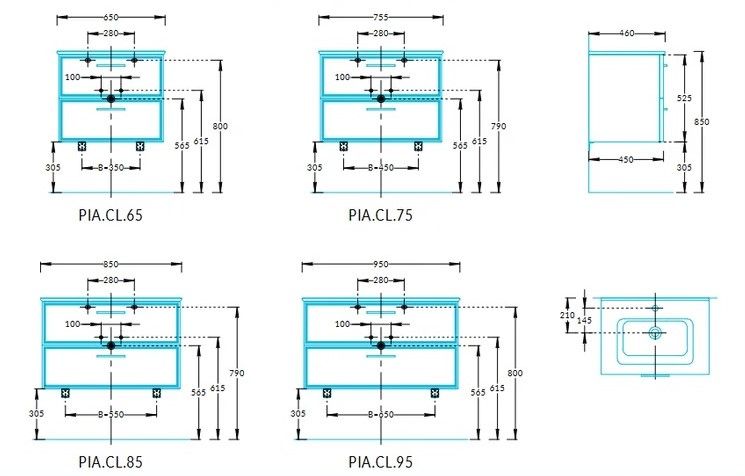 Тумба PIANO Classic шириной 85 см подходит для раковины PIANO соответствующей ширины. Мебель выполнена из МДФ и покрыта качественной немецкой пленкой ПВХ. Ящики выдвижного типа снабжены ручками в цвете «потертый никель», который хорошо сочетается с хромированными смесителями. В комплект входят крепления, гарантийный талон и инструкция по монтажу.