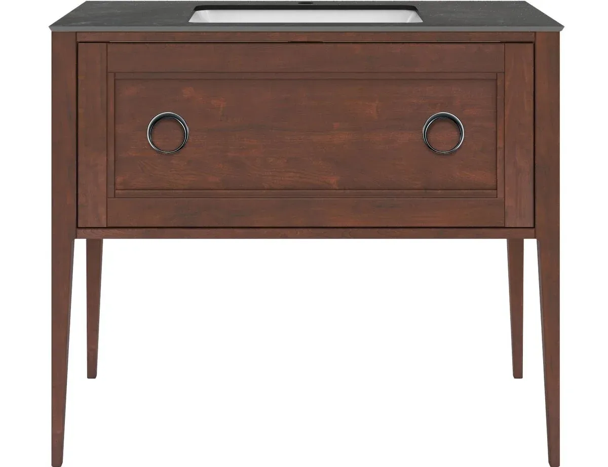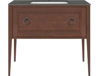 Напольная тумба с одним выдвижным и одним внутренним ящиками выполнена из массива ольхи с отделкой «закрытая пора». Вместительный ящик с плавным закрыванием украшен двумя крупными ручками. Сочетается с керамическими столешницами PLAZA Classic шириной 100 см. Подходит для установки раковин с типом монтажа «накладная на столешницу» и «встраиваемая сверху».