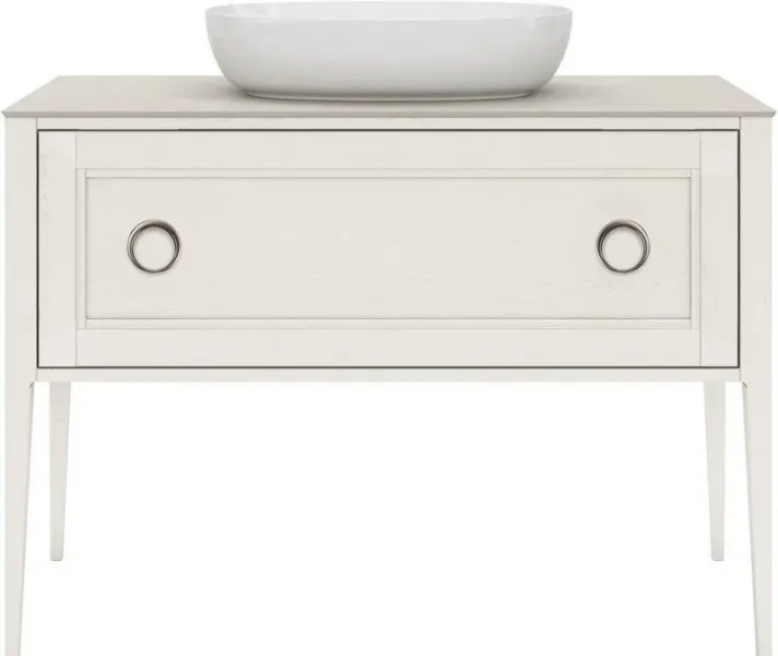 Напольная тумба с одним выдвижным и одним внутренним ящиками выполнена из массива ясеня с отделкой «открытая пора». Вместительный ящик с плавным закрыванием украшен двумя крупными ручками. Сочетается с керамическими столешницами PLAZA Classic шириной 120 см. Подходит для установки раковин с типом монтажа «накладная на столешницу» и «встраиваемая сверху».
