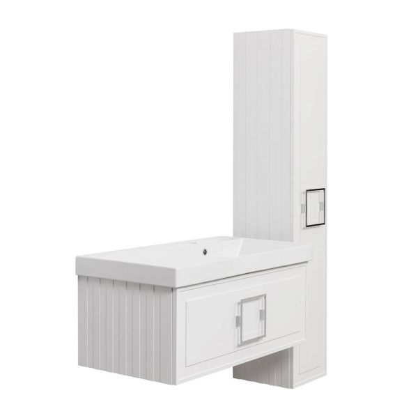 Тумба под раковину La Fenice Cubo FNC-01-CUB-B-90 87.6 смПодвесная тумба La Fenice Cubo FNC-01-CUB-B-90 обладает рядом неоспоримых преимуществ. Тумбу можно оснастить правосторонней или левосторонней встраиваемой раковиной (арт. CU.NN.90R или CU.NN.90L), либо же приобрести столешницу в подходящем цветовом решении (арт. FNC-03-PL01-90, FNC-03-VS03-90) и установить на неё раковину-чашу. К данной тумбе необходимо выбрать один из трех цветов ручки (FNC-04-CUB-B-168 - белая; FNC-04-CUB-N-168 - черная; FNC-04-CUB-C-168 - хром), ручка включена в стоимость тумбы. За счет входящего в комплект сифона Prevex, тумба обладает полноценным ящиком для хранения (без выреза). Ящик выполнен в фантазийной цветовой гамме "Лён антрацит". Тумба оснащена скрытыми доводчиками плавного закрывания частичного выдвижения Samet (Турция) и подвесным регулируемым механизмом Camar (Италия). Фасад и корпус тумбы покрыты краской и матовым лаком, что является надёжной защитой от влаги. Прекрасным и функциональным дополнением к тумбе станет пенал La Fenice Cubo белого цвета FNC-05-CUB-B-30