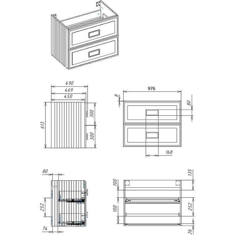 Габариты корпуса тумбы (ШхВхГ): 976х613х490 мм.