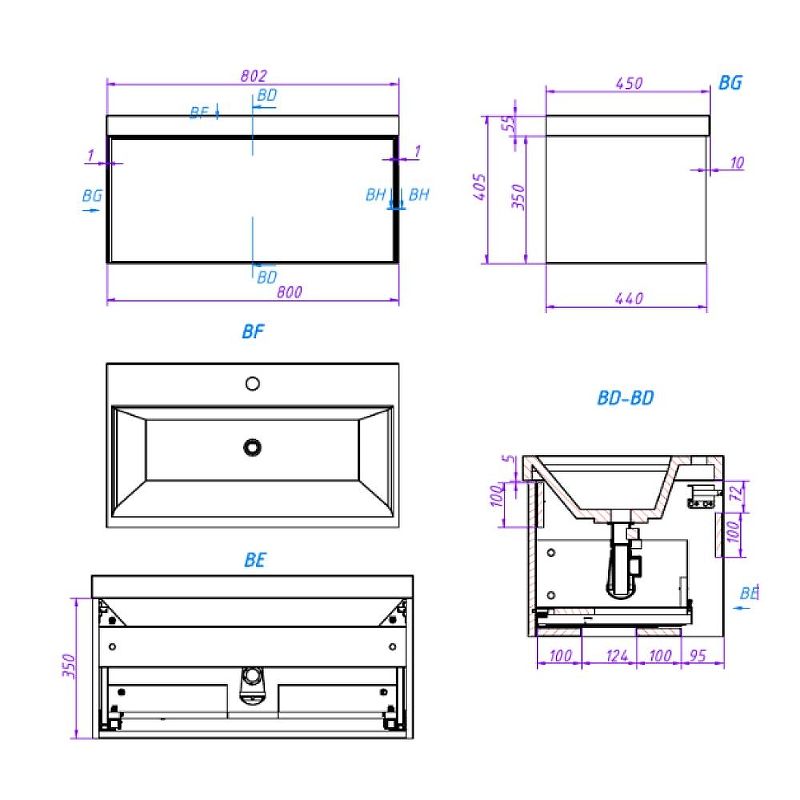 Тумба под раковину La Fenice Simpla FNC-01-SIM-BG-80Синяя матовая 80 см Подробнее
