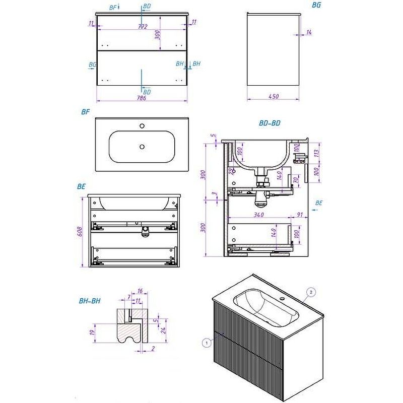 Габариты корпуса тумбы (ШхВхГ): 786х608х450 мм.