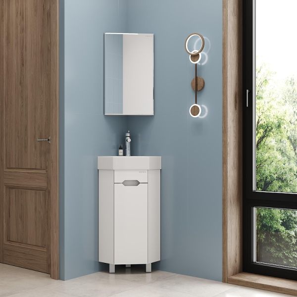 Угловая напольная тумба для ванной комнаты Onika Айленд 35 сочетает в себе стильный минималистичный дизайн, белую глянцевую поверхность и высочайшее качество исполнения. Тщательно продуманная конструкция позволяет занять минимум места, а угловая форма поможет с пользой использовать пространство, которое зачастую остается незадействованным. За дверью скрывается вместительное внутреннее пространство, разделенное полкой. Корпус тумбы выполнен из ЛДСП, фасад - из ЛМДФ в пленке, устойчивых к механическим воздействиям, перепадам температур и высокой влажности. Интегрированная в фасад ручка позволяет сделать эксплуатацию мебели более удобной и практичной.