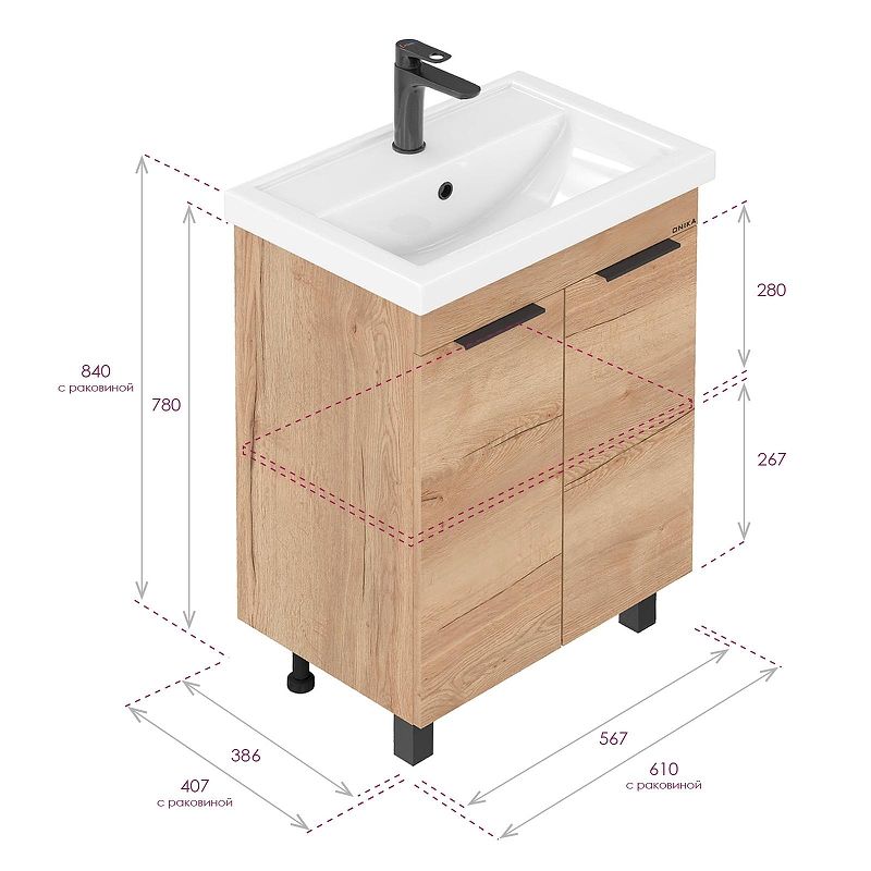 Размеры тумбы без учета раковины и ножек 57x39x68 см.