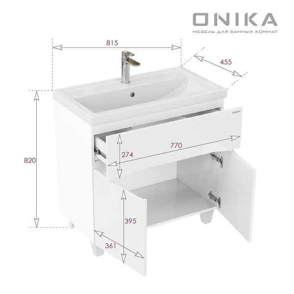 Тумба под раковину напольная Onika Стрим 108059 80 см белый