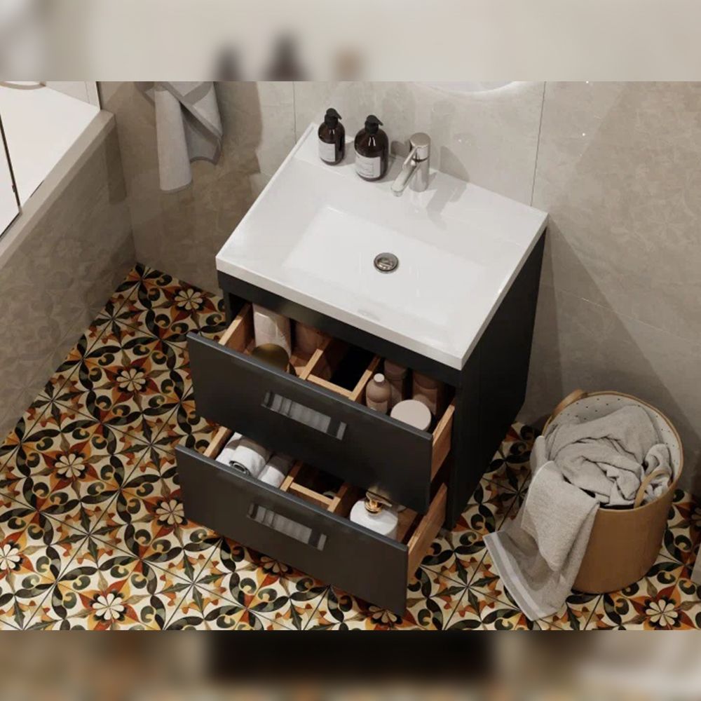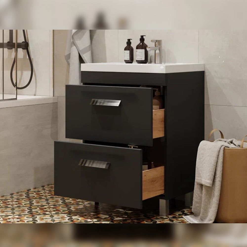 Тумба под раковину напольная Velvex Orlando tn.ORL.CLA.60.2Y графит, 60 см: 2 выдвижных ящика с механизмом плавного закрывания.