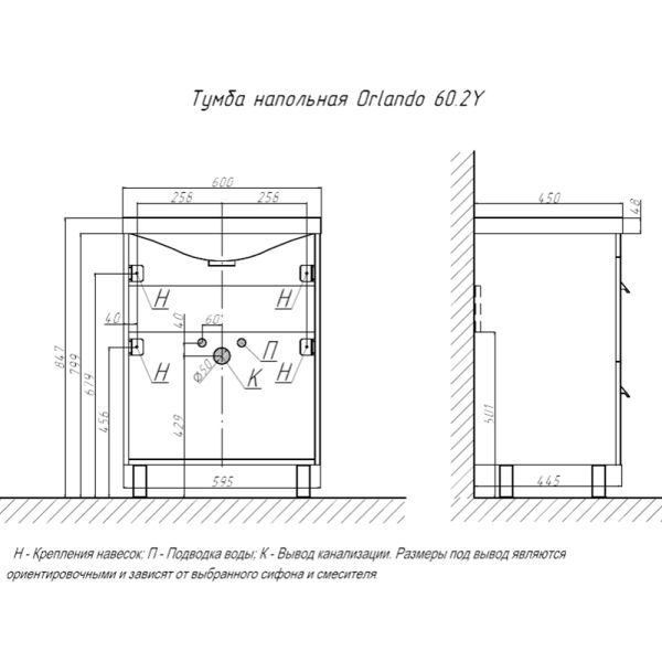 Тумба под раковину напольная Velvex Orlando tn.ORL.CLA.60.2Y графит, 60 см