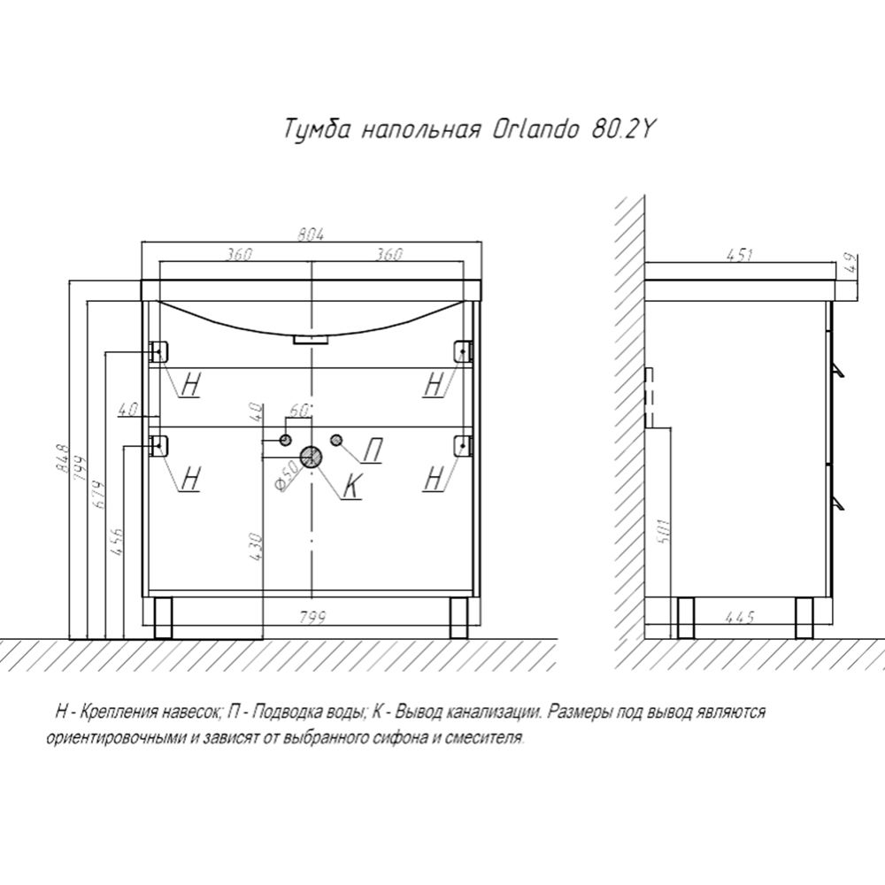 Тумба под раковину напольная Velvex Orlando tn.ORL.CLA.80.2Y белый матовый, 80 см купить