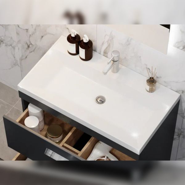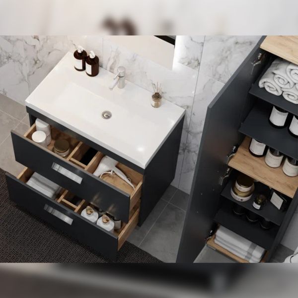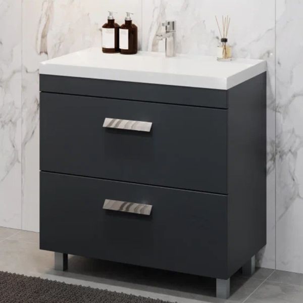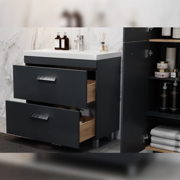 Тумба под раковину напольная Velvex Orlando tn.ORL.CLA.80.2Y графит, 80 см: 2 выдвижных ящика с механизмом плавного закрывания.