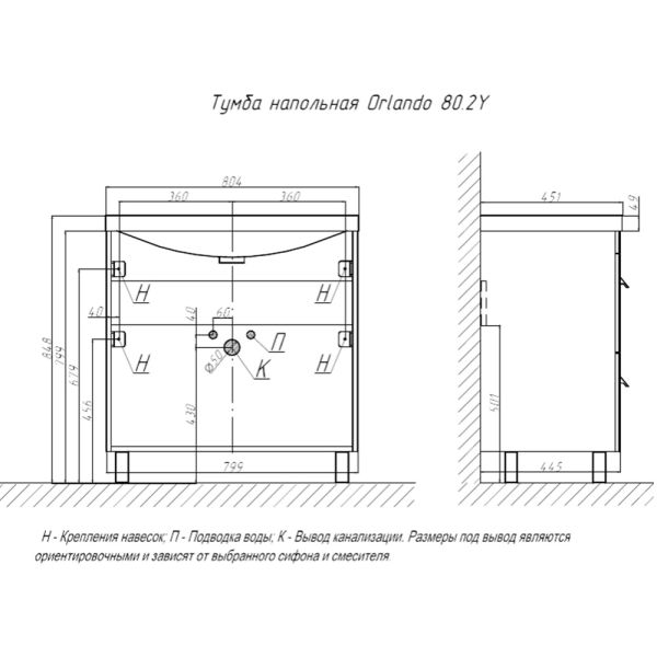 Тумба под раковину напольная Velvex Orlando tn.ORL.CLA.80.2Y графит, 80 см купить