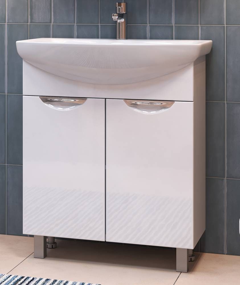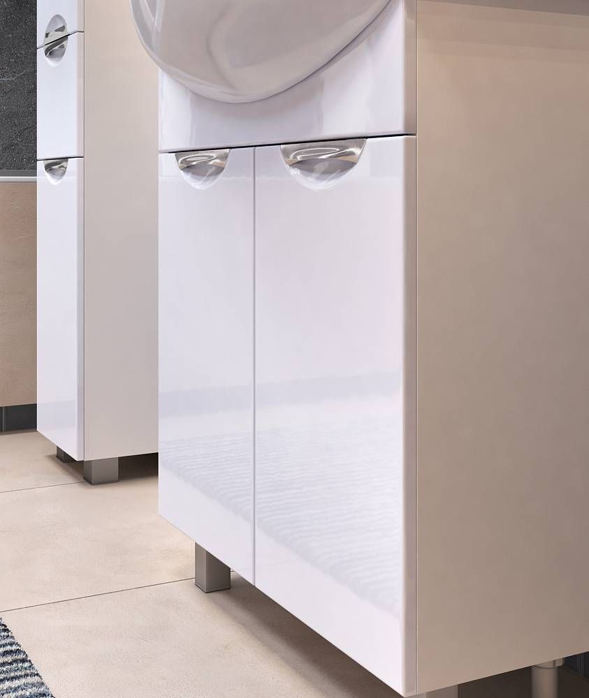 2 дверцы; 1 полка ЛДСП; ручка врезная металлическая хромированная; опоры квадратные регулируемыеМатериал корпуса: влагостойкая ЛДСПМатериал фасадов: ЛМДФПокрытие: пленка ПВХДверцы: петли с механизмом плавного закрывания.