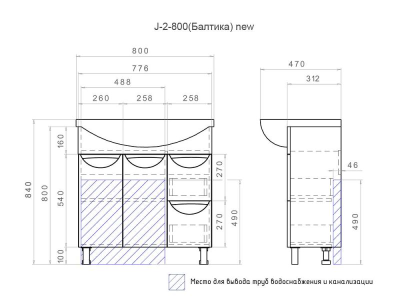 2 дверцы; 2 ящика; 1 полка ЛДСП; ручка металлическая хромированная; опоры квадратные регулируемые.