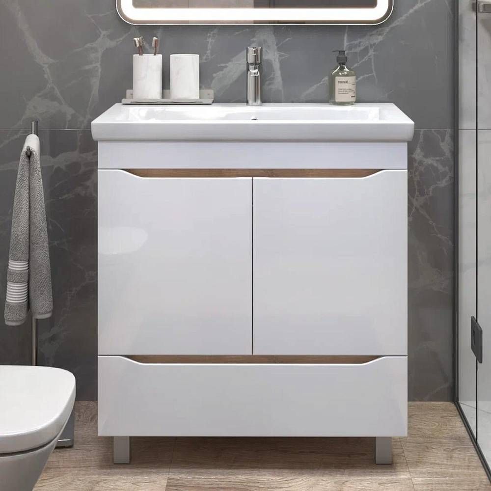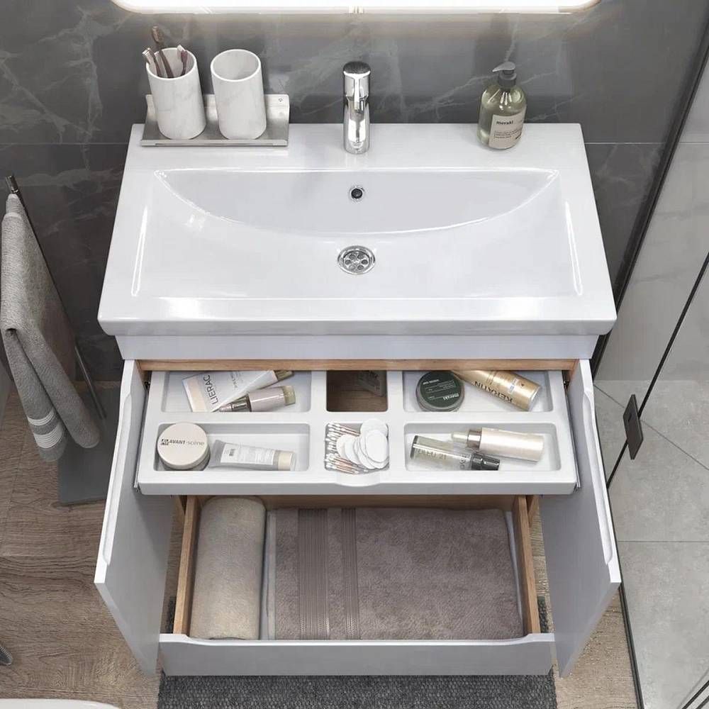 Тумба под раковину напольная VIGO Grani 286 дуб золотой, 80 см. Гарантийный срок 2 года. Монтаж: напольный. Доводчик: да. Нажимной механизм: нет.