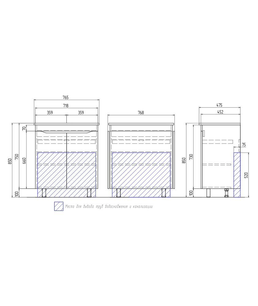 Тумба под раковину напольная Vigo Grani tn.GRI.OSK.75.2D 75 см белый купить