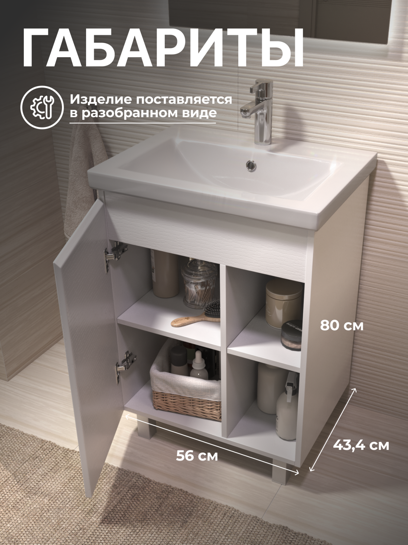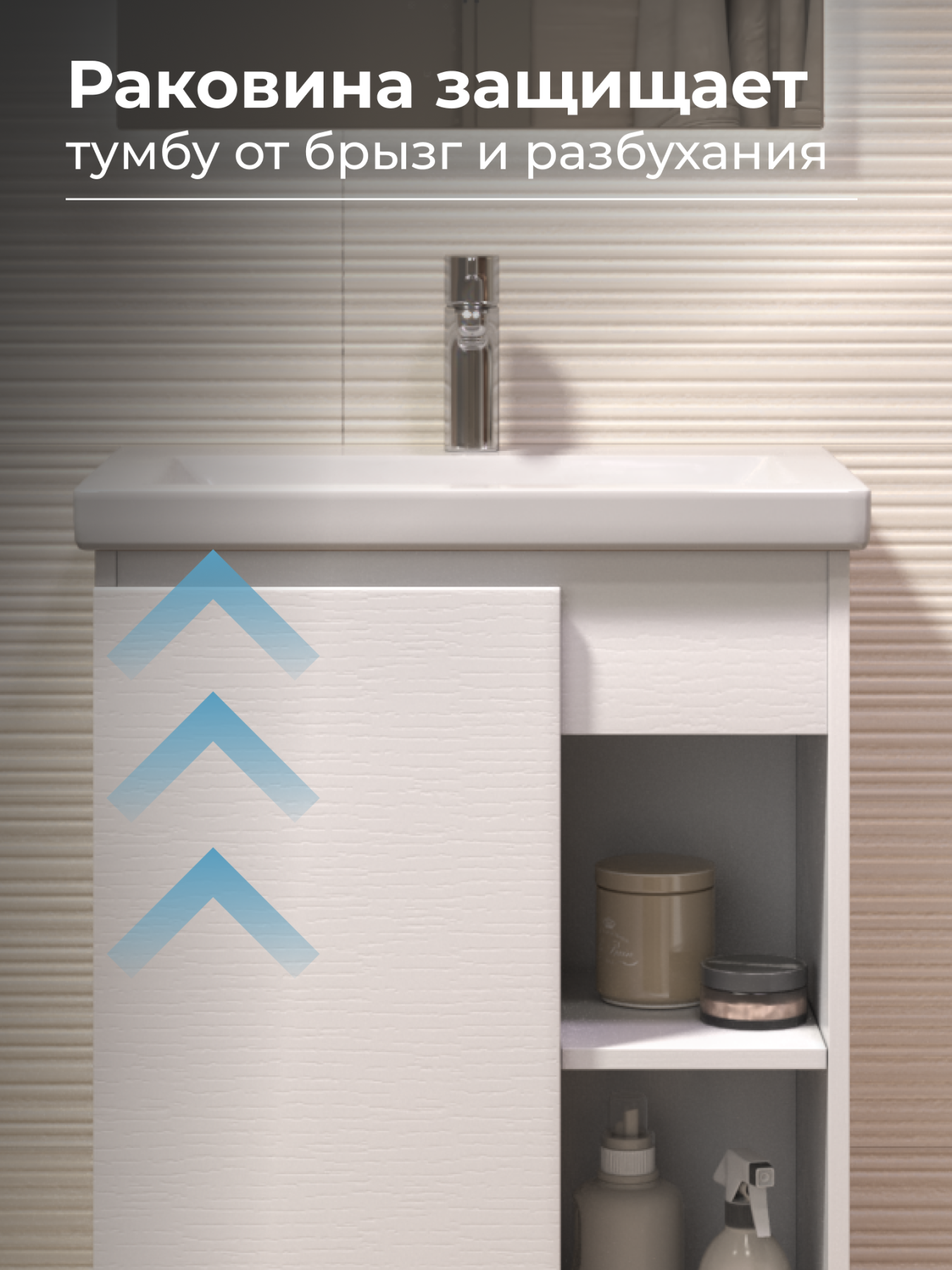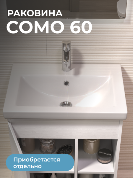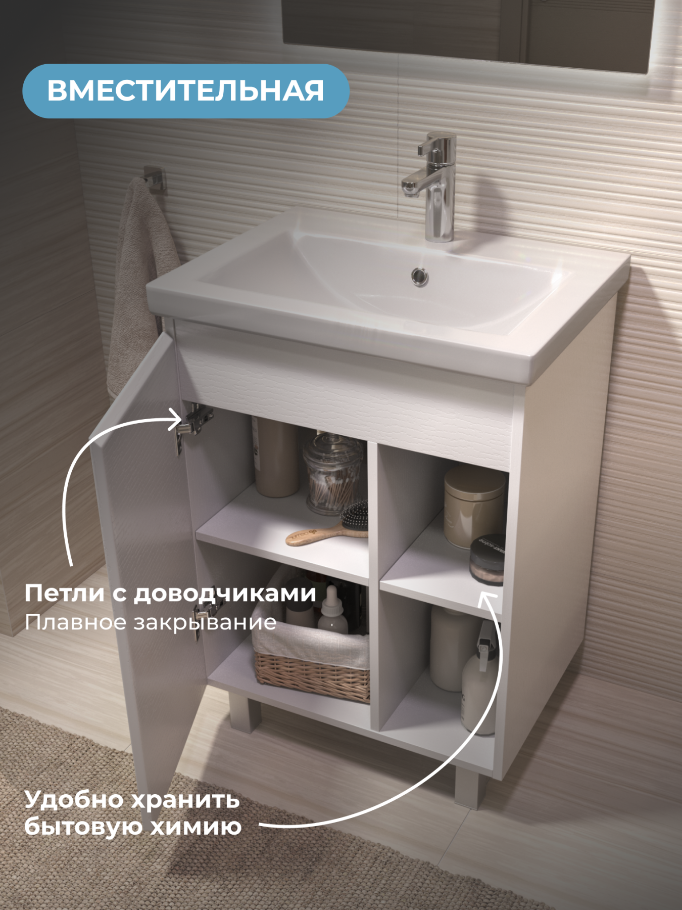 Тумба Milos 60, напольная, 1 дверца, белая (под раковину Como 60). Оснащение: 1 дверца, петли с ... Подробнее