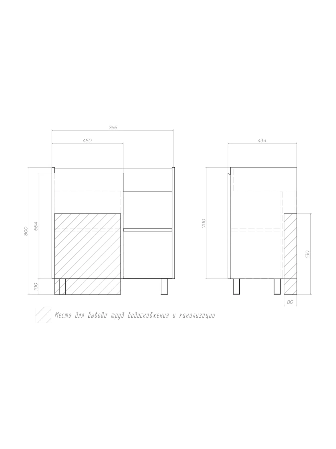 Тумба под раковину напольная Vigo Milos 318 80 см поставляется в разобранном виде белый