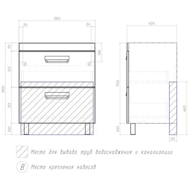Тумба под раковину напольная VIGO Plaza tn.PLA.COM.70.2Y, 70 см. Гарантийный срок 2 года. Монтаж... Подробнее