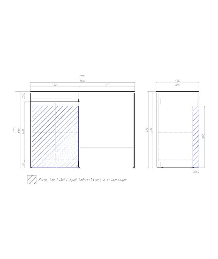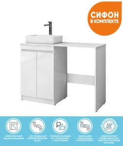Специальный сифон Vigo в комплекте.Материал корпуса: влагостойкая ЛДСПМатериал фасада: ЛМДФПокрытие фасада: пленка ПВХОтсутствие лицевой фурнитуры – интегрированная ручка.В комплект поставки входит только тумба, столешница приобретается отдельно!