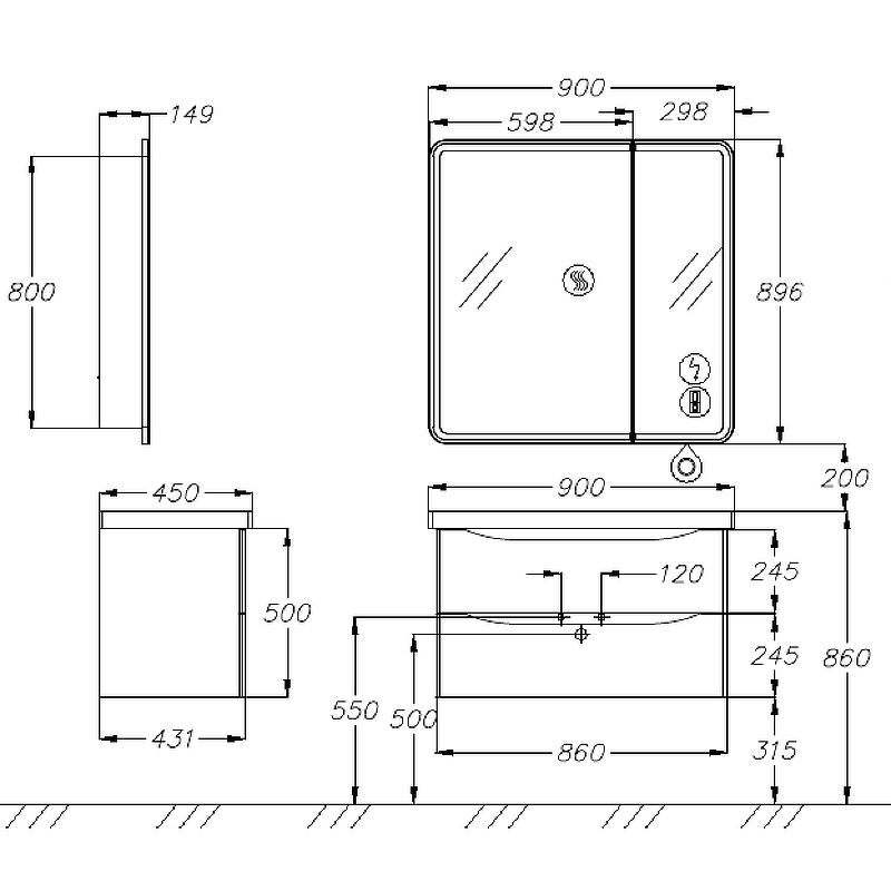 Габариты корпуса тумбы (ШхВхГ): 860х500х431 мм.