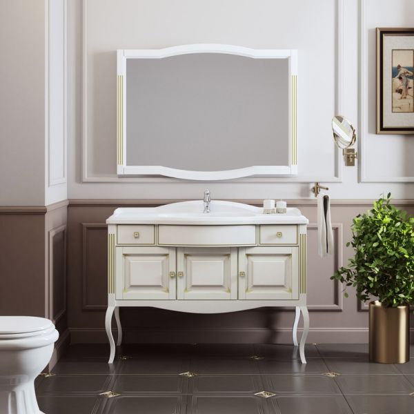 Тумба под раковину Opadiris Лаура 120 Z0000012472. Цвет: белый матовый.Выполнена в классическом стиле с плавными изогнутыми формами и изящными гнутыми ножками. Фасадные элементы украшены резными узорами. Особую роскошь добавляют ручки инкрустированные кристаллами Swarovski.Материал фасада/корпуса: массив бука/влагозащищенный МДФ.