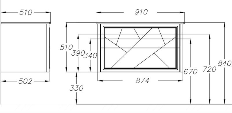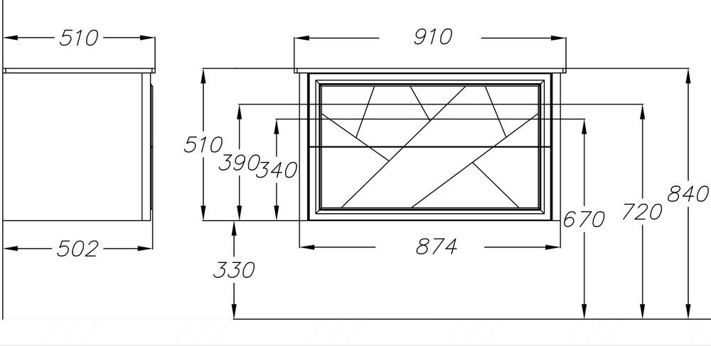 Габариты корпуса тумбы (ШхВхГ): 878х505х502 мм.