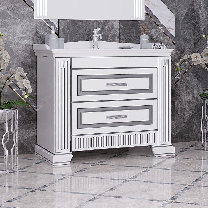 Тумба под раковину Opadiris Оникс 100 00-00003527. Станет шикарным элементом в интерьере ванной комнаты. Превосходно подходит как для классического, так и для современного стиля. Роскошный фасад выполнен с глубокой фрезеровкой с патиной, а также дополнен удобными ручками-скобами.Характеристики:Цвет: белая глянцевая с серебряной патиной.