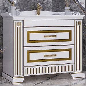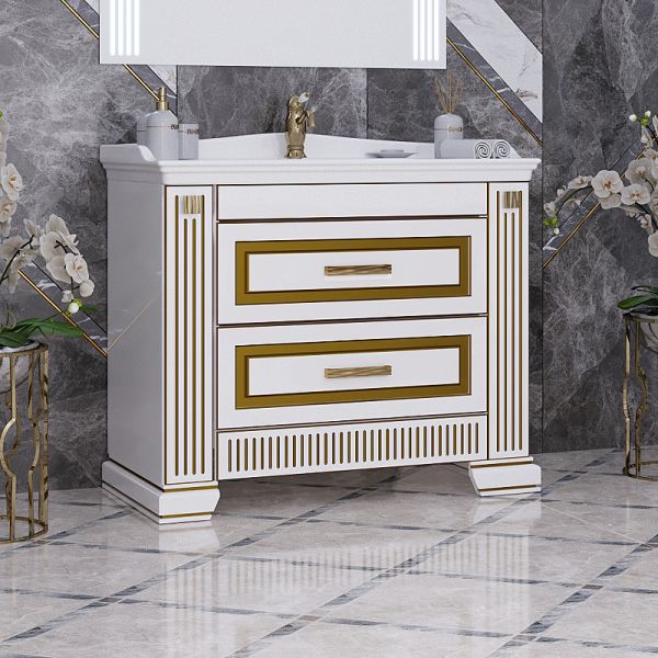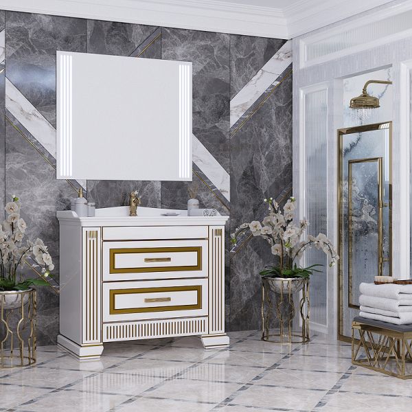 Тумба под раковину Opadiris Оникс 00-00003548 Белая глянцевая с золотой патиной