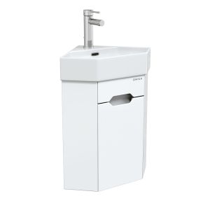 Подвесная угловая тумба для ванной комнаты Onika Айленд 35 сочетает в себе стильный минималистичный дизайн, белую глянцевую поверхность и высочайшее качество исполнения. Тщательно продуманная конструкция позволяет занять минимум места, а угловая форма поможет с пользой использовать пространство, которое зачастую остается незадействованным. За дверью скрывается вместительное внутреннее пространство, разделенное полкой. Корпус тумбы выполнен из ЛДСП, фасад - из ЛМДФ в пленке, устойчивых к механическим воздействиям, перепадам температур и высокой влажности. Интегрированная в фасад ручка позволяет сделать эксплуатацию мебели более удобной и практичной.