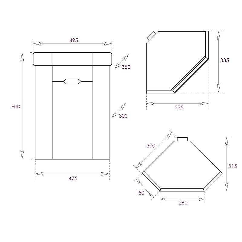 Размеры тумбы без учета раковины и ножек 47x31x50 см.