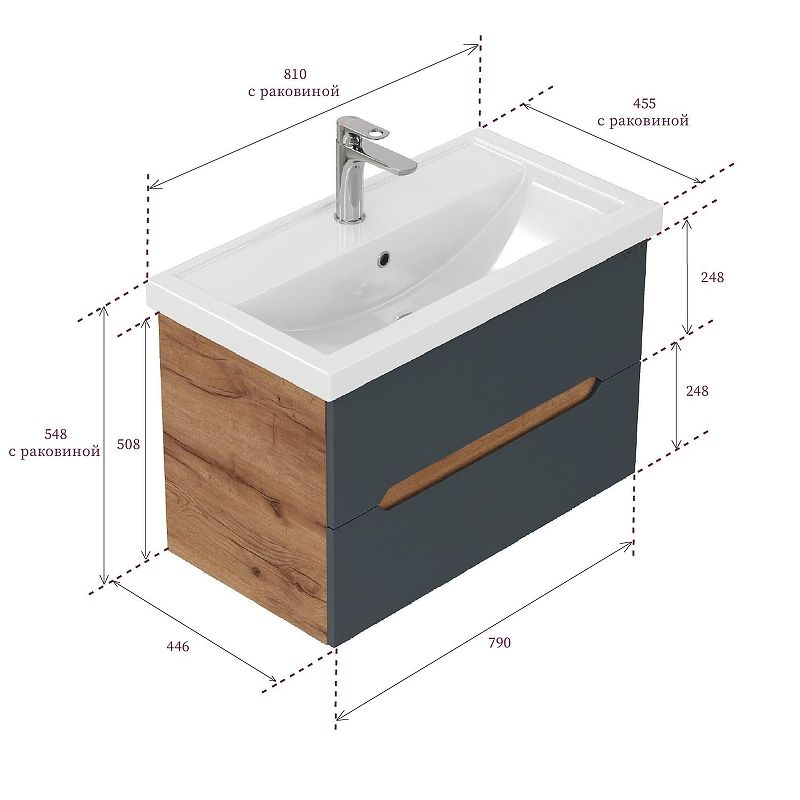Тумба под раковину подвесная Onika Айленд 108064 80 см графит/дуб крафт золотой купить