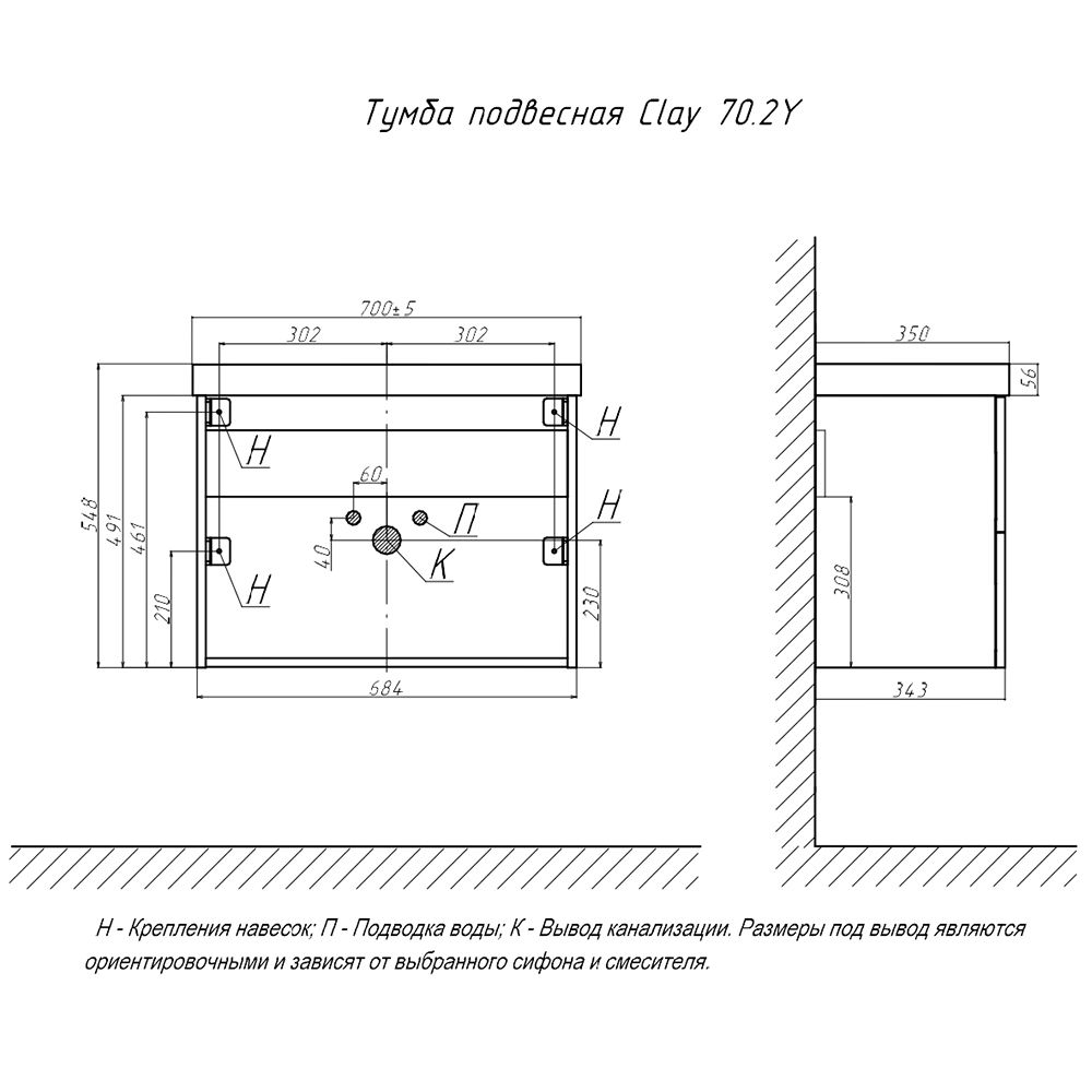 Тумба под раковину подвесная Velvex Clay tp.CLA.9595.70.2Y дуб верона, 70 см: 2 выдвижных ящика с механизмом плавного закрывания.