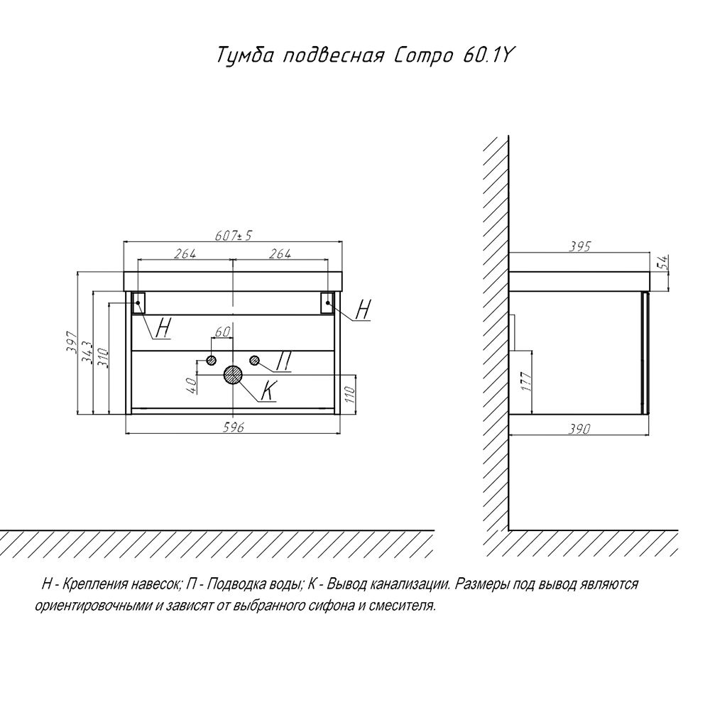 Тумба под раковину подвесная Velvex Compo tp.COM.9696.60.1Y белый глянец, 60 см купить