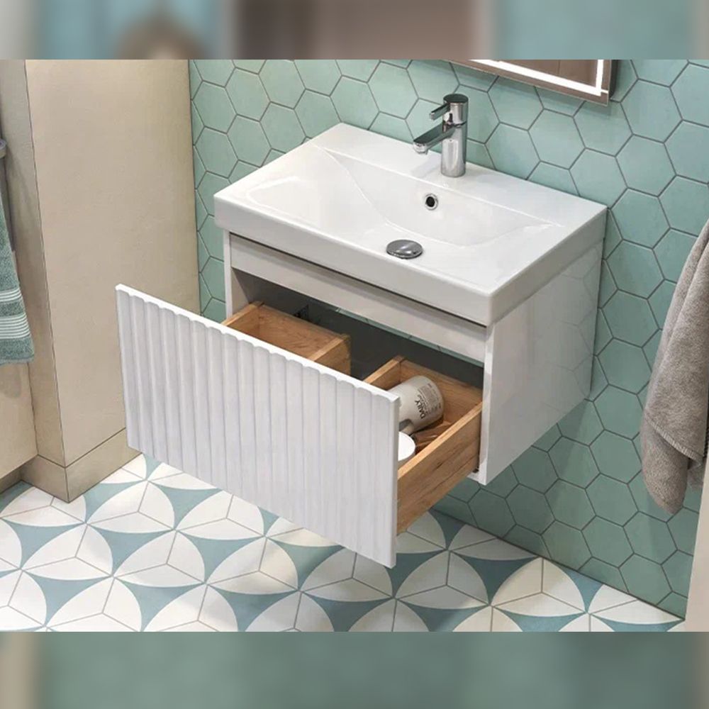 Тумба под раковину подвесная Velvex Compo tp.COM.9696.60.1Y белый глянец, 60 см: 1 выдвижной ящик с механизмом открывания push-to-open.