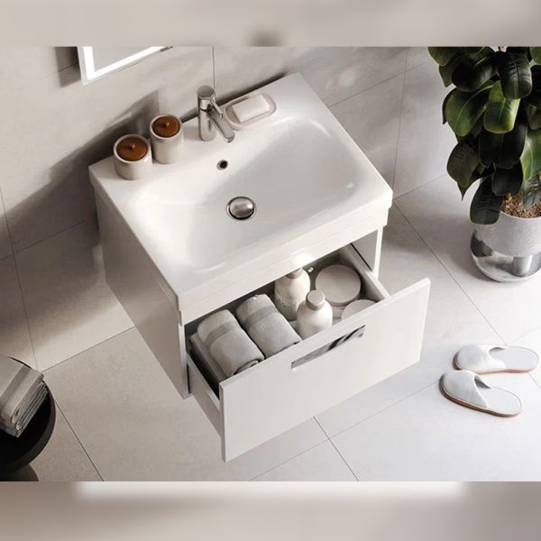 Тумба под раковину подвесная Velvex Estea tp.EST.MOD.60.1Y, 60 см: 1 выдвижной ящик с механизмом плавного закрывания.