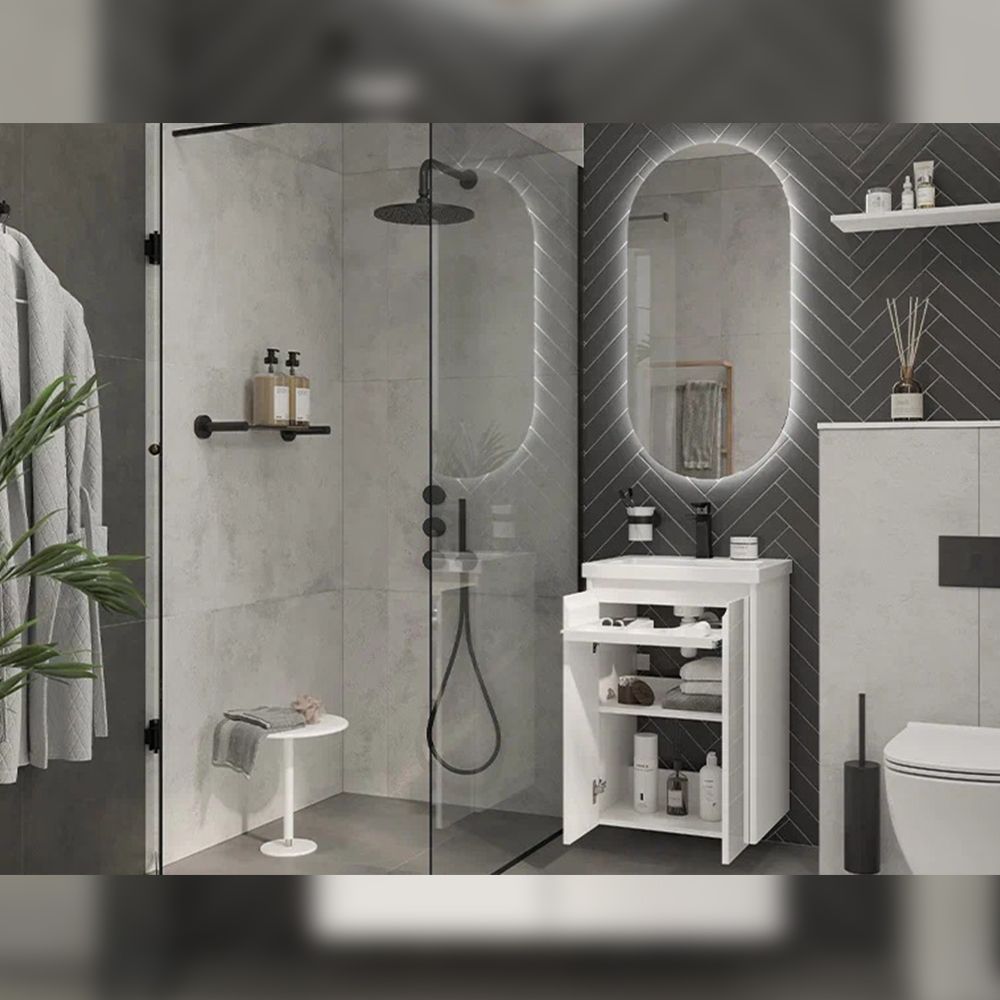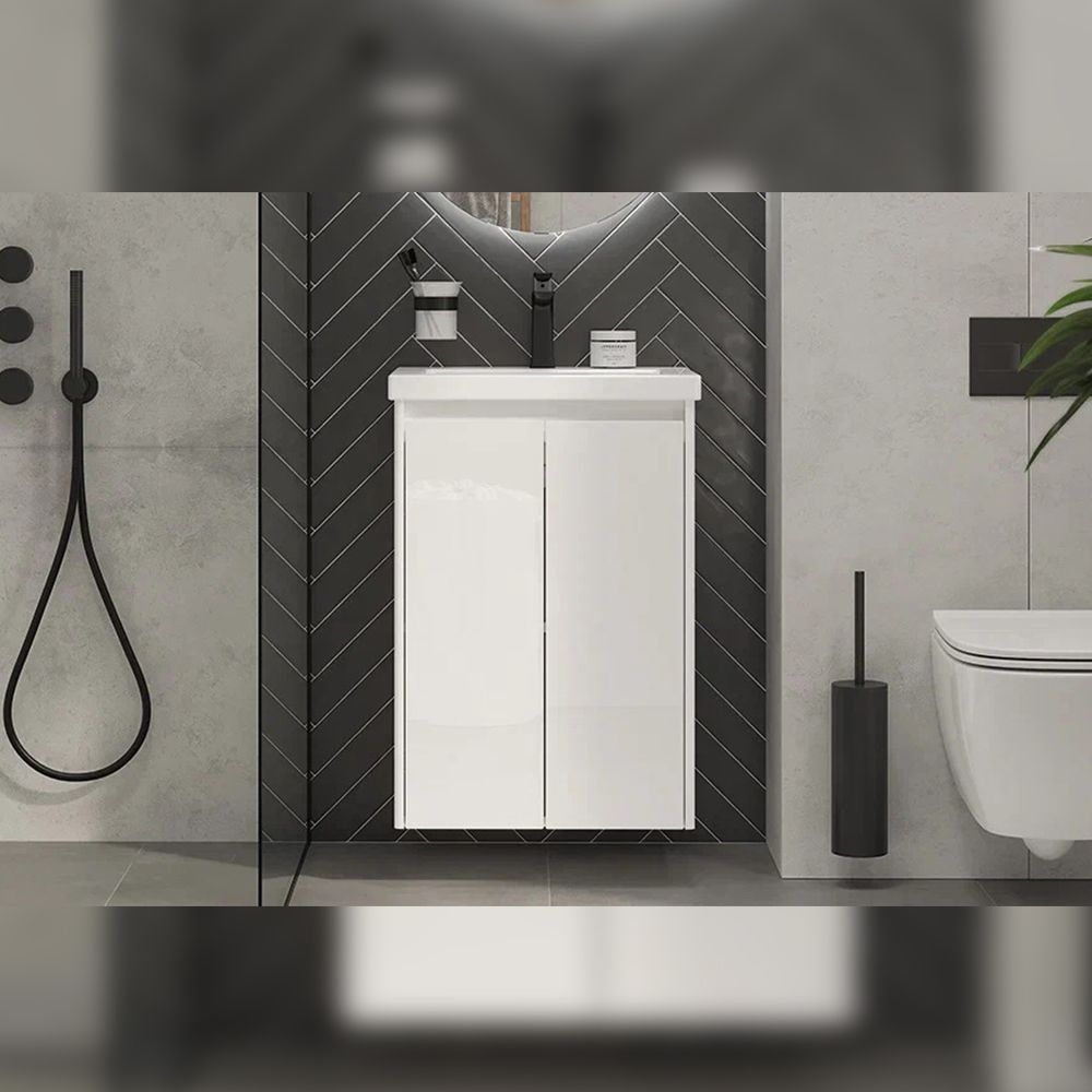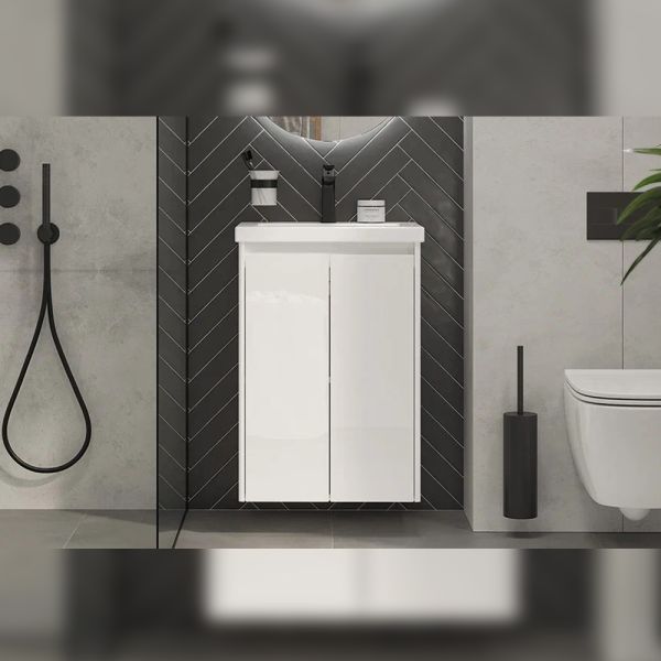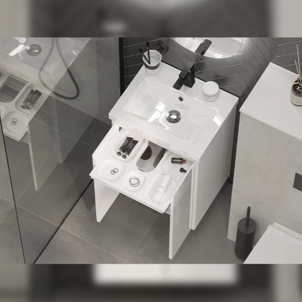 Тумба под раковину подвесная Velvex Klaufs tp.KLA.COM.50.2D, 50 см: 2 распашные дверцы,1 полка, выдвижной органайзер.