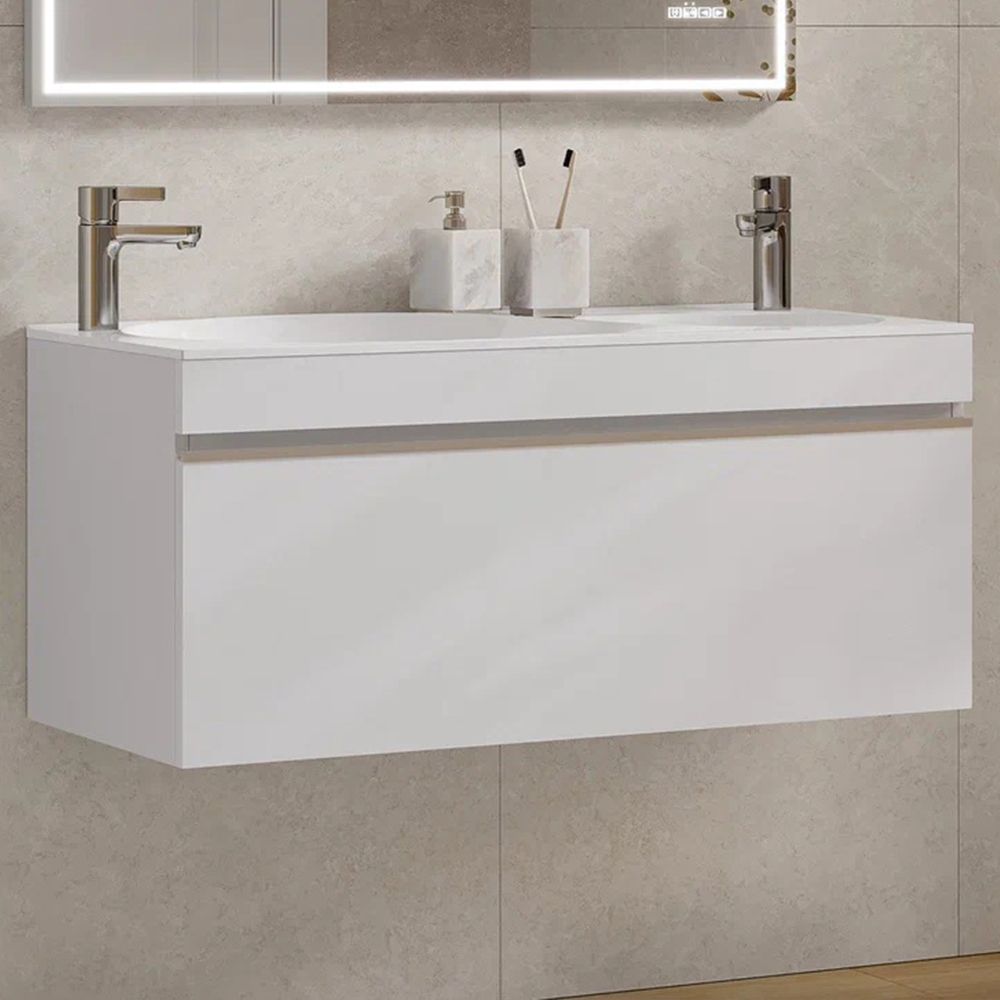 Тумба под раковину подвесная Velvex Otto tp.OTO.OTT.100.1Y белый глянец, 100 см: 1 выдвижной ящик.
