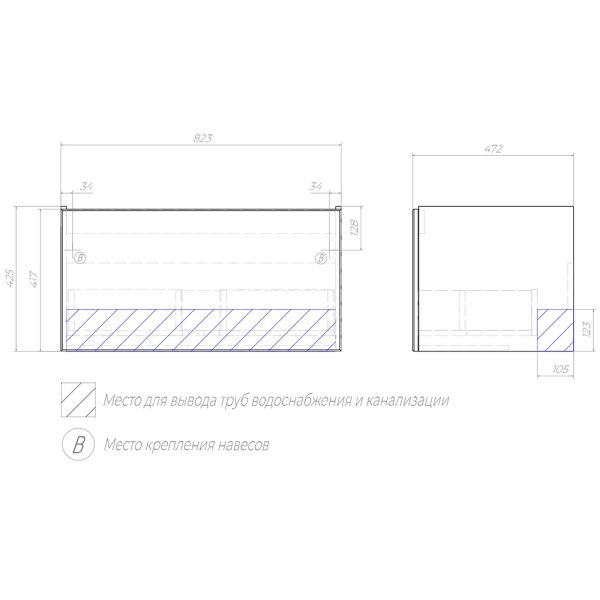 Тумба под раковину подвесная Velvex Posse tp.POS.OSK.85.1Y верде, 85 см: 1 выдвижной ящик с механизмом плавного закрывания.