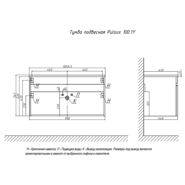 Тумба под раковину подвесная Velvex Pulsus tp.PUL.PUL.100.1Y дуб сонома, 100 см: 1 выдвижной ящик.