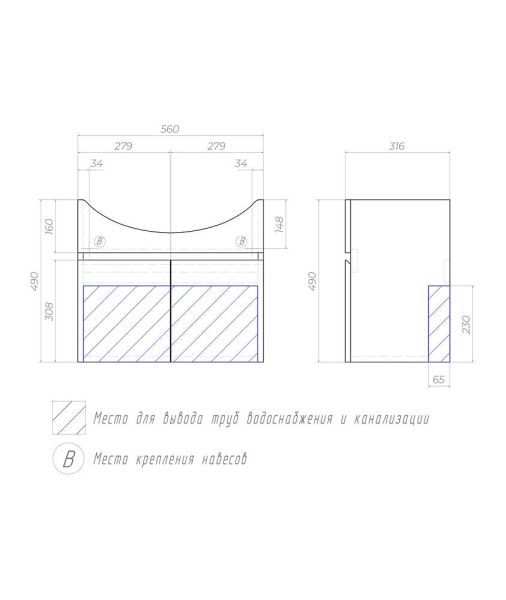 Тумба под раковину подвесная Vigo Wing tp.WIN.BAL.60.2D 60 см белый
