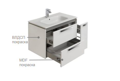 Тумба под раковину Roca Lago 7857296806 80 см белый Ширина: 800 ммГлубина: 448 ммВысота: 490 ммТумба:- белый глянец: фасад – MDF, корпус – ВЛДСП- светлый дуб: фасад – ВЛДСП, корпус – ВЛДСП- направляющие GTV плавного выдвижения- ящики полного выдвижения- в комплекте компактный сифон Prevex
