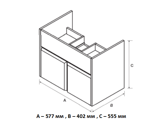 Тумба под раковину Roca Up ZRU9303010 60 см белый Ширина: 577 ммГлубина: 402 ммВысота: 555 мм Тумба:- фасад – MDF, корпус – ВЛДСП- ящики полного выдвижения- в комплекте компактный сифон Prevex- направляющие Hettich с системой push-to-open