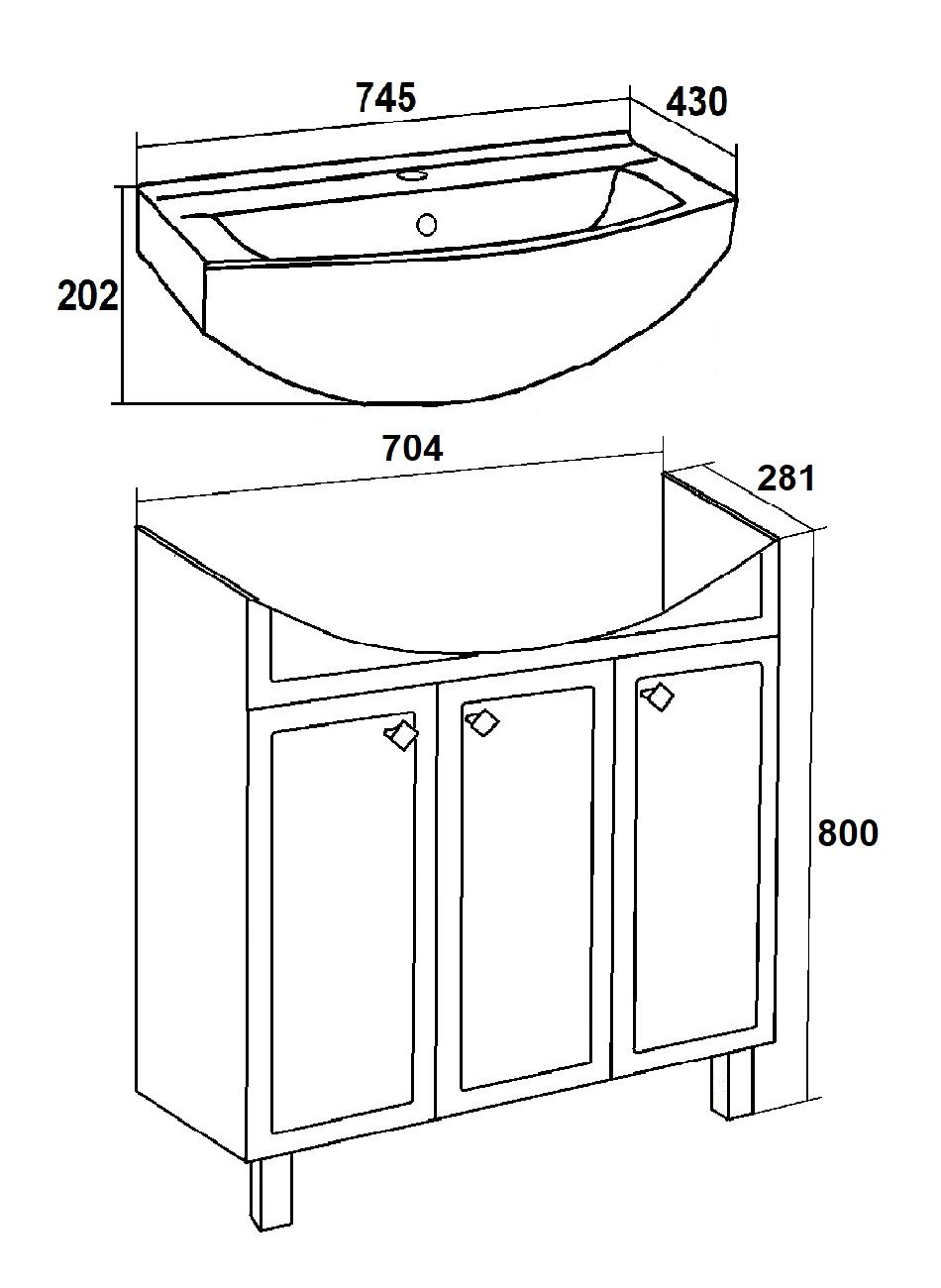 Тумба с раковиной RUNO РИМИНИ - выполнена в стиле Прованс. Тепло и уют домашнего очага, очарование старины и элегантность, а также продуманный функционал помогут украсить интерьер любой ванной комнаты. Тумба под раковину РИМИНИ (напольная) имеет три распашные дверцы. Оснащена - двумя внутренними полками. В комплекте входят - петли со встроенным доводчиком, 3 ручки, 4 ножки. Тумба комплектуется керамической раковиной "Best 75" (745*430 мм), глубиной 20,2 см. Мебель для ванной RUNO - красота и практичность в мелочах!