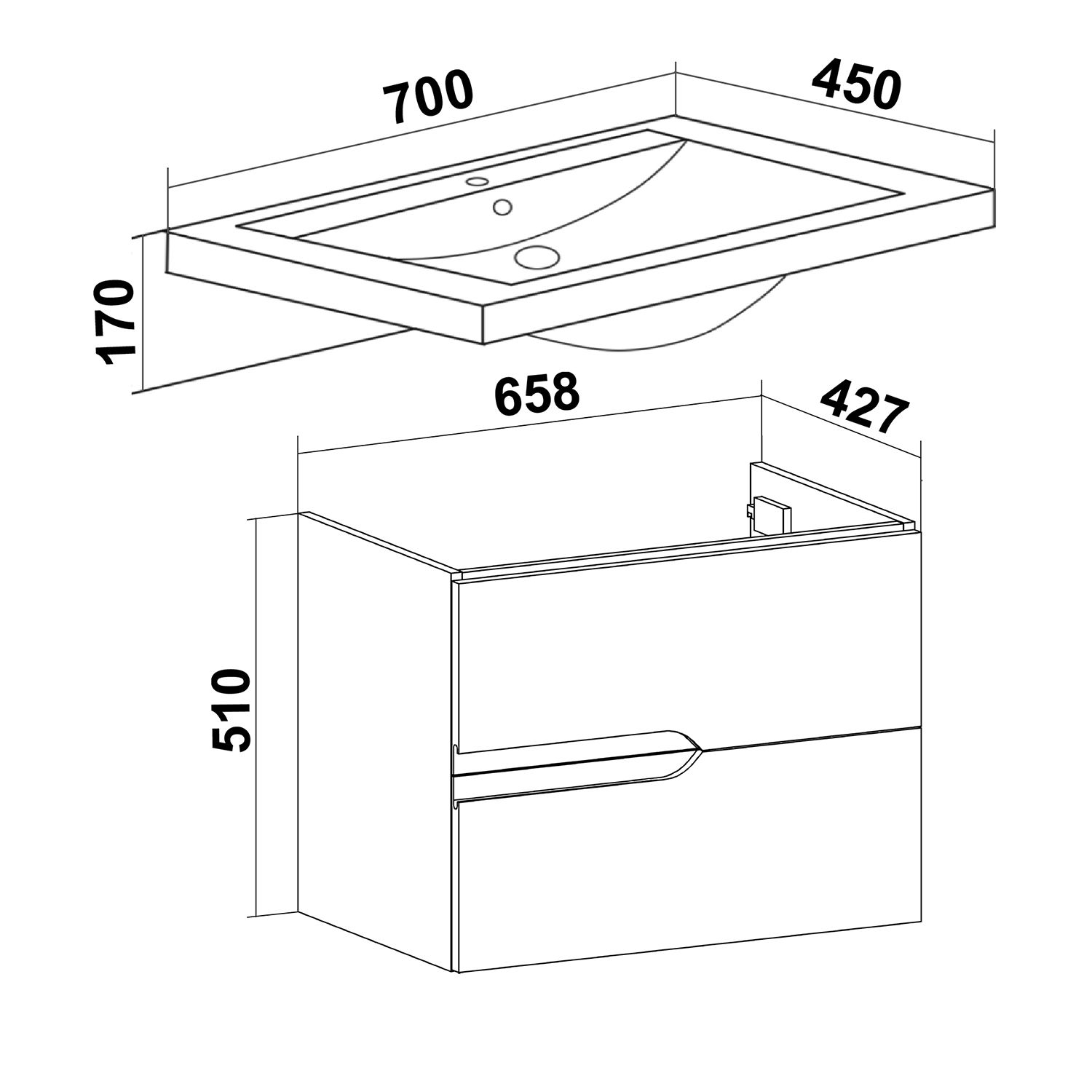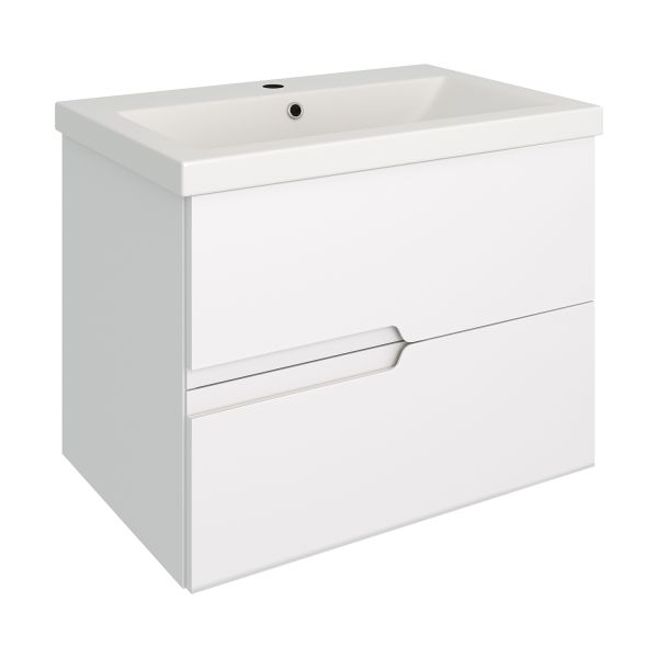 Подвесная тумба функционально состоит из двух ящиков на шариковых направляющих скрытого монтажа с доводчиком. Модель комплектуется умывальником "Como" 70см ТМ Cersanit.