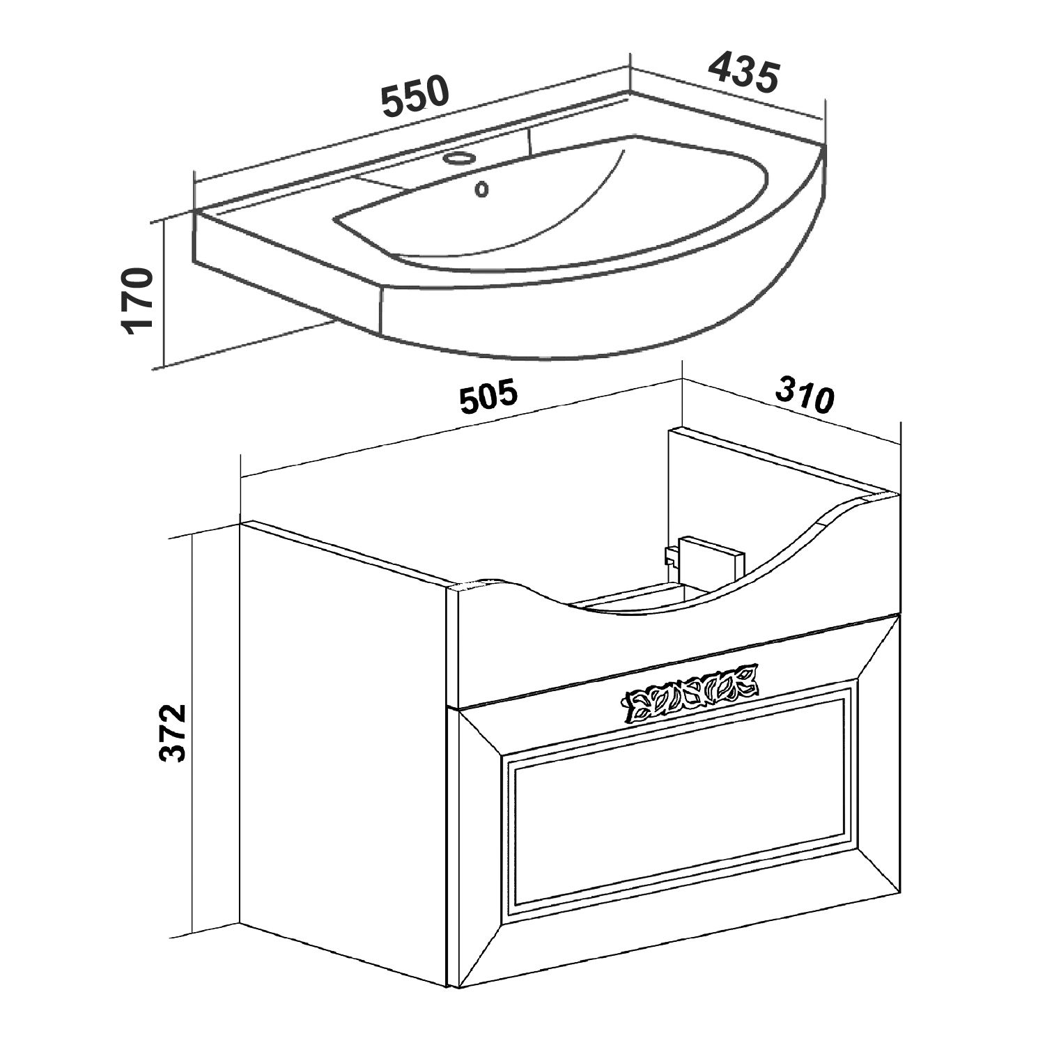 Тумба под раковину Runo подвесная (под умывальник Элеганс 55) Монро 55 (00-00000458)