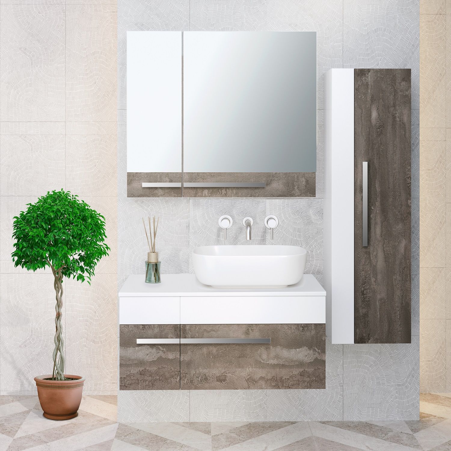 Тумба под раковину Runo подвесная железный камень Вудлайн 85 (00-00001343)