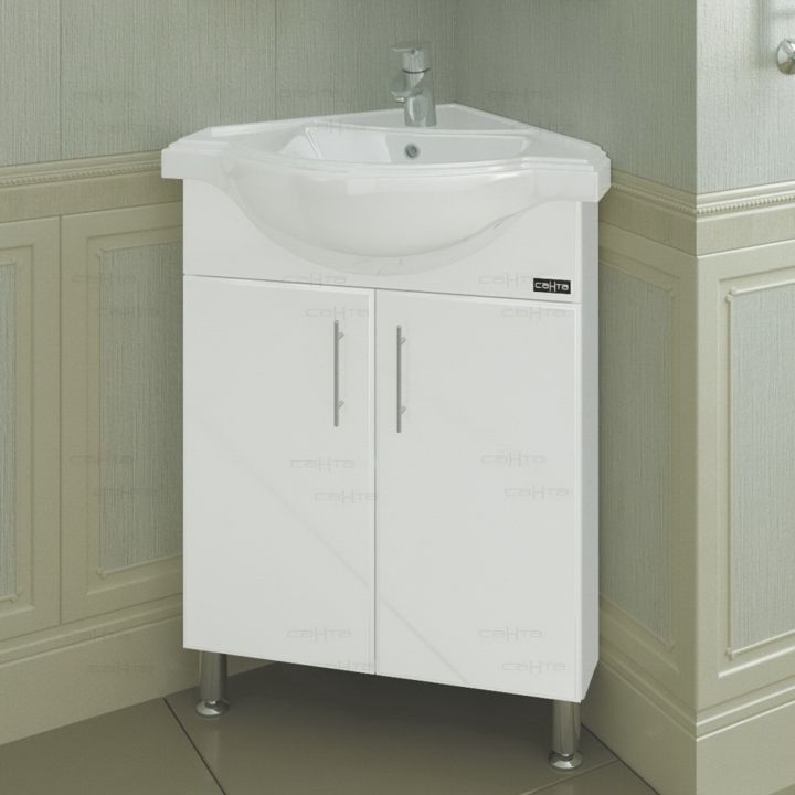 Тумба для комплекта СанТа угловая не только функциональный предмет интерьера ванной комнаты, но восхитительное эргономичное дополнение дизайна, как небольшого, так и крупного помещения. Напольный способ установки производится непосредственно на пол, при этом конструкция максимально устойчива при серьезных физических нагрузках.Компания СанТа использует при производстве высококачественные водоотталкивающие материалы (ВЛДСП), соответствующие всем необходимым требованиям безопасности. Коллекция выполнена в эксклюзивном дизайнерском решении в лучших традициях современного стиля. Белый, основной цвет исполнения СанТа, отлично подходящий большинству дизайнерских решений. Тумба под раковину предусматривает удобную и вместительную систему хранения, состоящую из дверей. Качественные доводчики позволяют обеспечить мягкое и тихое закрывание.Россия родина бренда СанТа, вся продукция производится со строгим соблюдением всех стандартов, благодаря чему можно быть абсолютно уверенным в надежности и высоком качестве. Тумба для комплекта СанТа создаст уют и комфорт в любом дизайнерском решении, и ванная комната обретет неповторимый элемент интерьера.