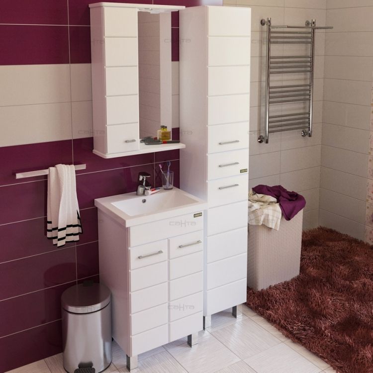 Тумба для комплекта СанТа подойдет как для просторной ванной комнаты, так и для небольшого помещения. Напольный способ установки производится непосредственно на пол, при этом конструкция максимально устойчива при серьезных физических нагрузках.В производстве используют только качественные влагостойкие материалы (ВЛДСП), в составе которых полностью отсутствуют опасные вещества. Серия Венера отличается превосходным дизайном с соблюдением всех ключевых элементов современного стиля. Основным цветом, в котором выполнена тумба под раковину СанТа является белый, гармонирующий с большинством интерьерных решений. Тумба под раковину предусматривает удобную и вместительную систему хранения, состоящую из полок и дверей.Страной бренда СанТа является Россия, все товары производятся с выполнением соответствующих стандартов качества, что позволяет быть полностью уверенными в долговечности и надежности. Тумба для комплекта СанТа поможет сделать уютным любой интерьер и создать идеальную ванную комнату.